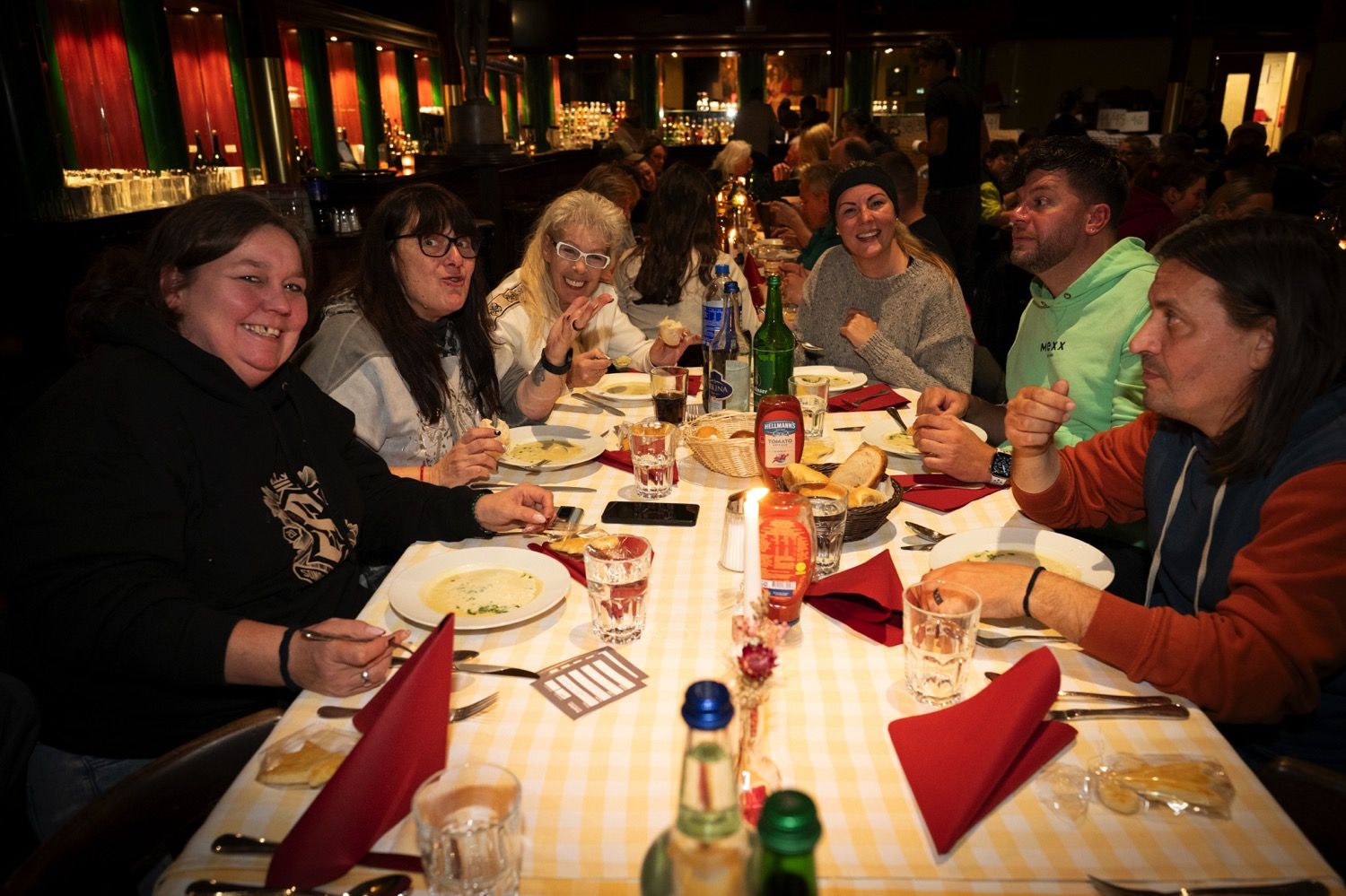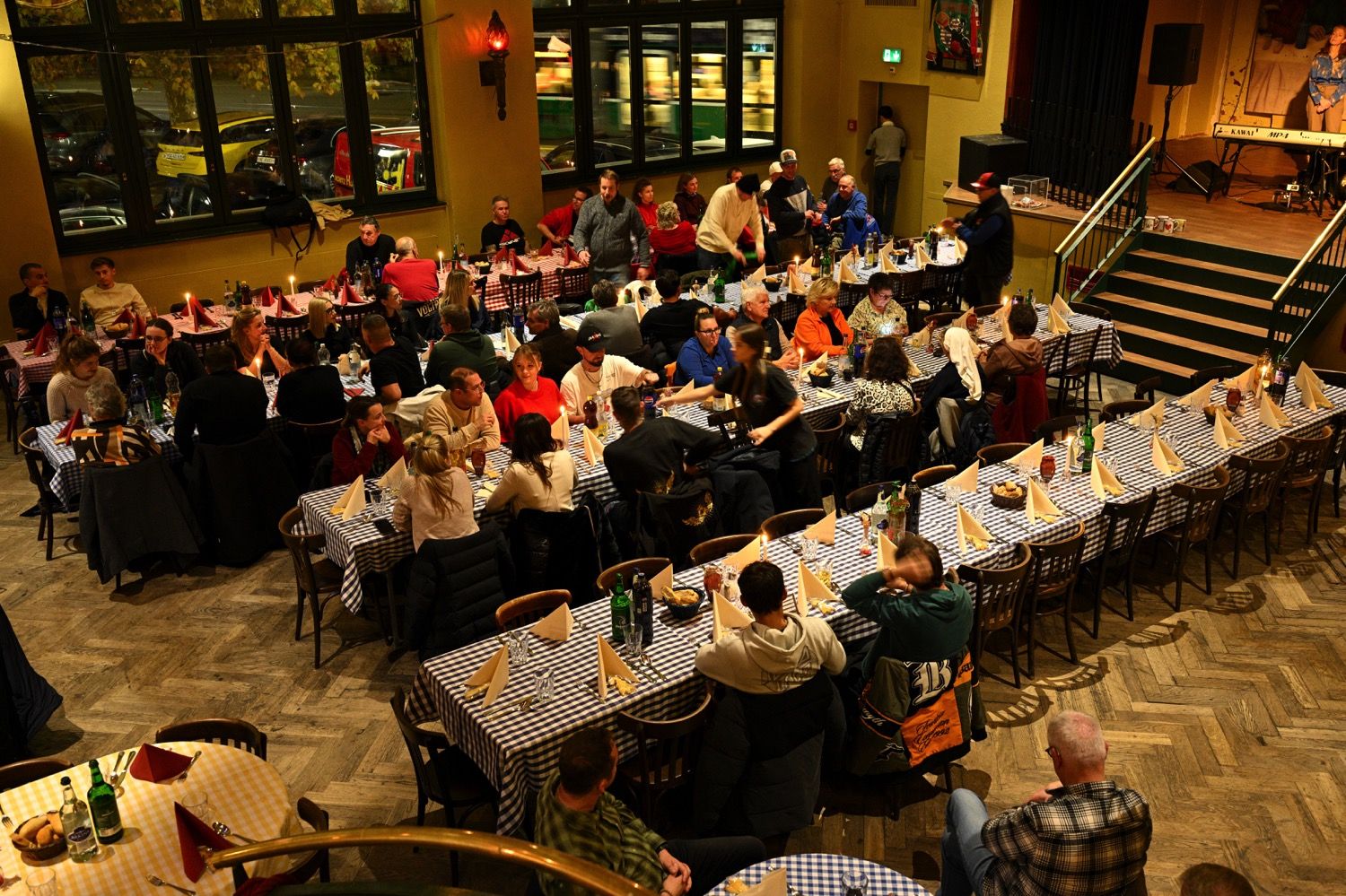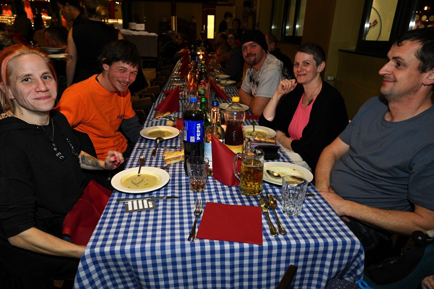 „Soggeball" nennt sich der illustre Anlass, der alljährlich in der zweiten Woche der Basler Herbstmesse stattfindet. Soggeball" deshalb, weil am Ende des Abends wollene handgestrickte Socken verteilt werden. Dazu gibt es für alle ein Päckli selbstgebackene Gutzi.