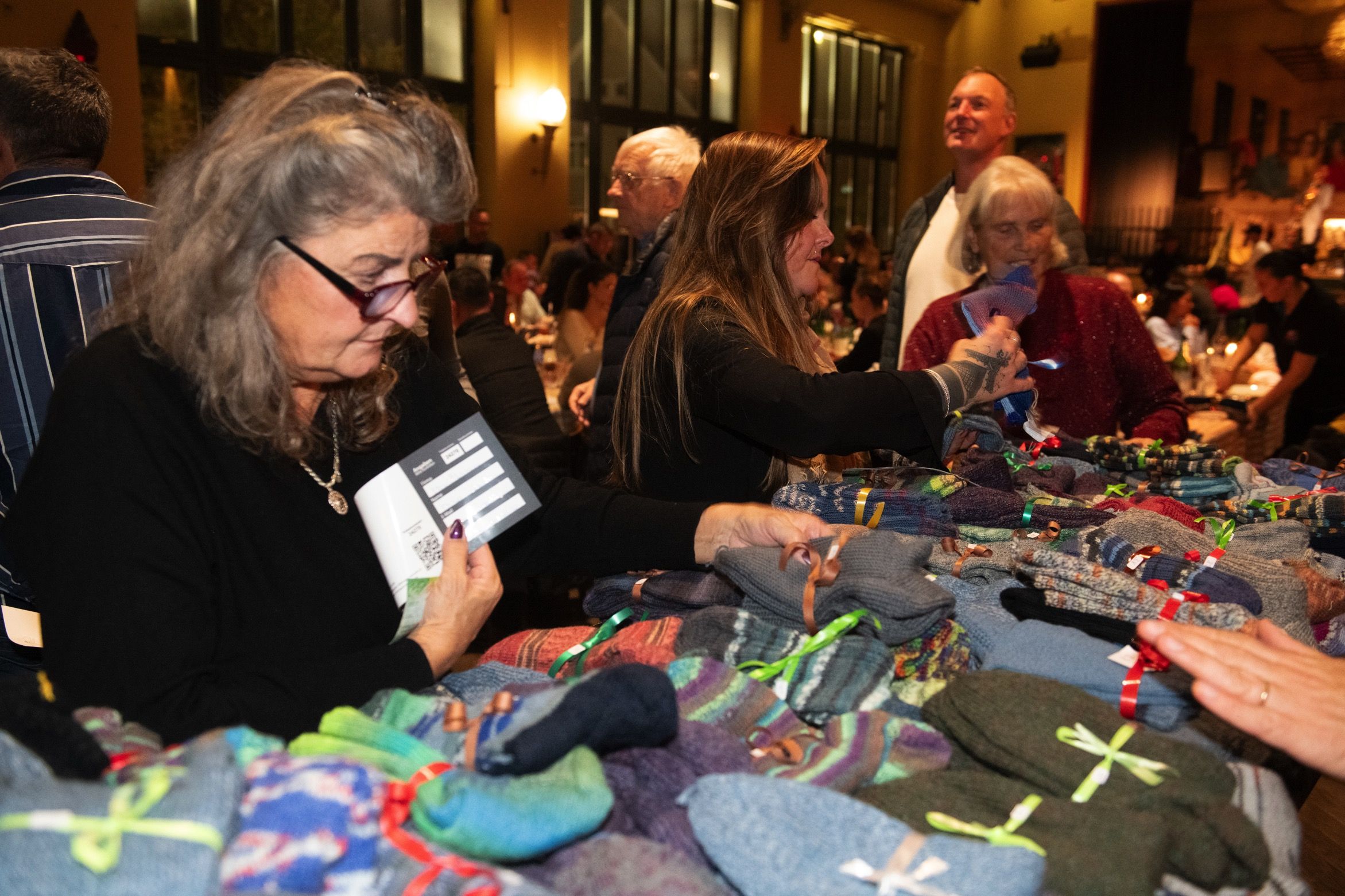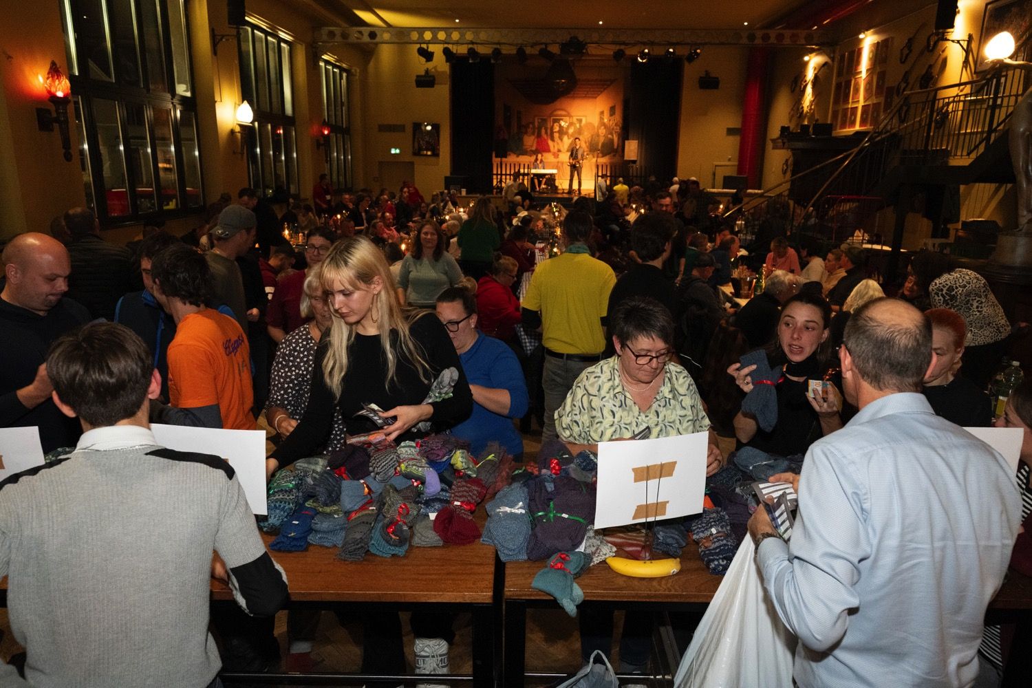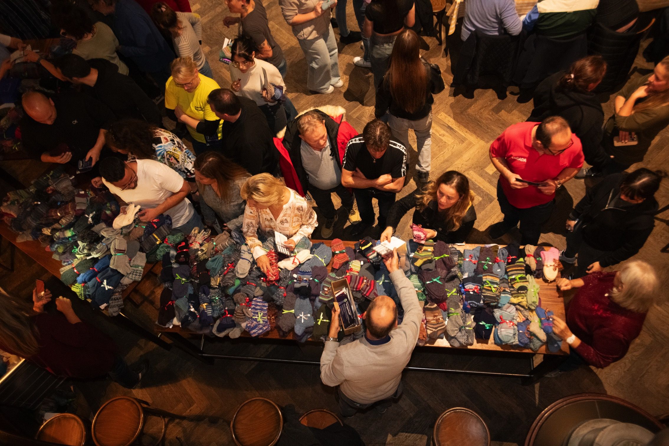 „Soggeball" nennt sich der illustre Anlass, der alljährlich in der zweiten Woche der Basler Herbstmesse stattfindet. Soggeball" deshalb, weil am Ende des Abends wollene handgestrickte Socken verteilt werden. Dazu gibt es für alle ein Päckli selbstgebackene Gutzi.