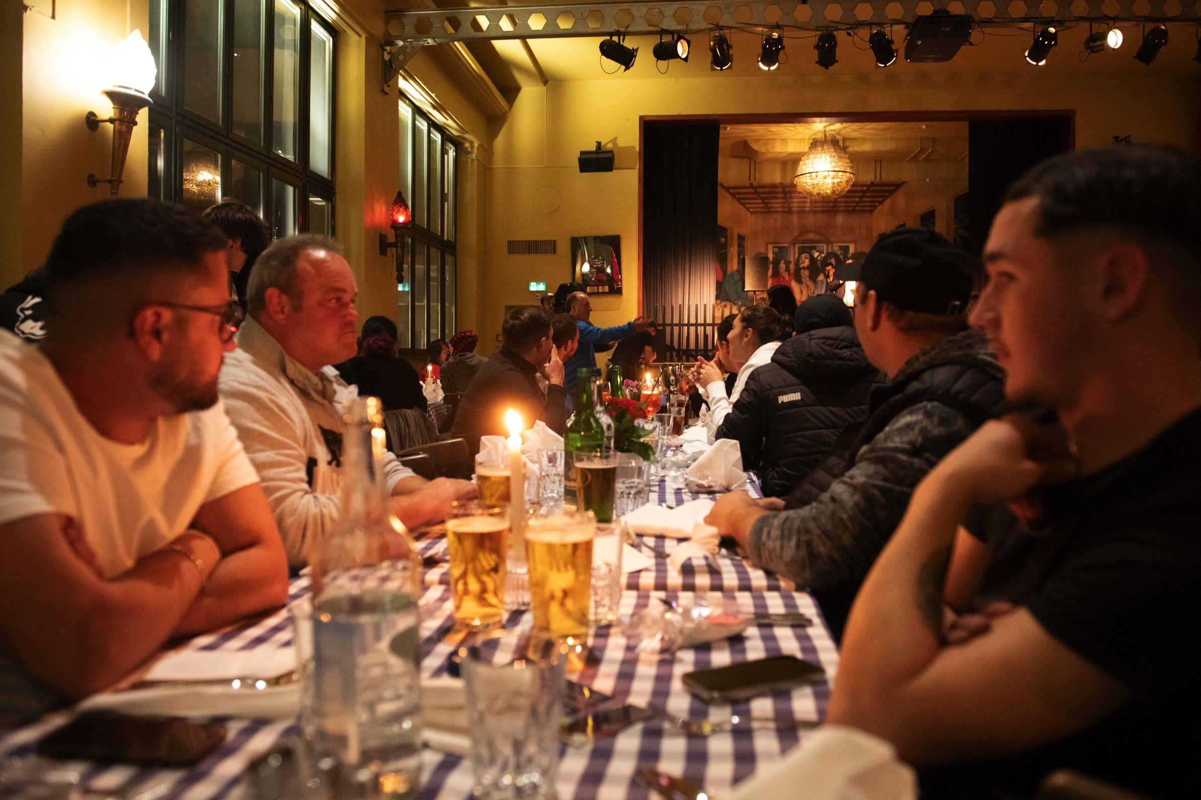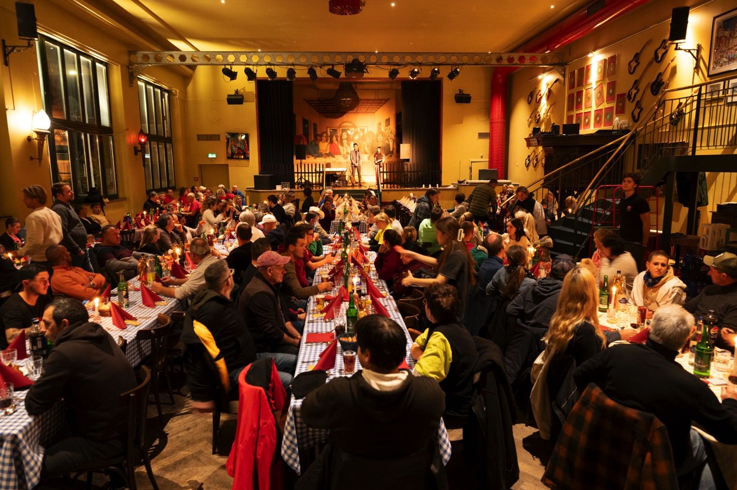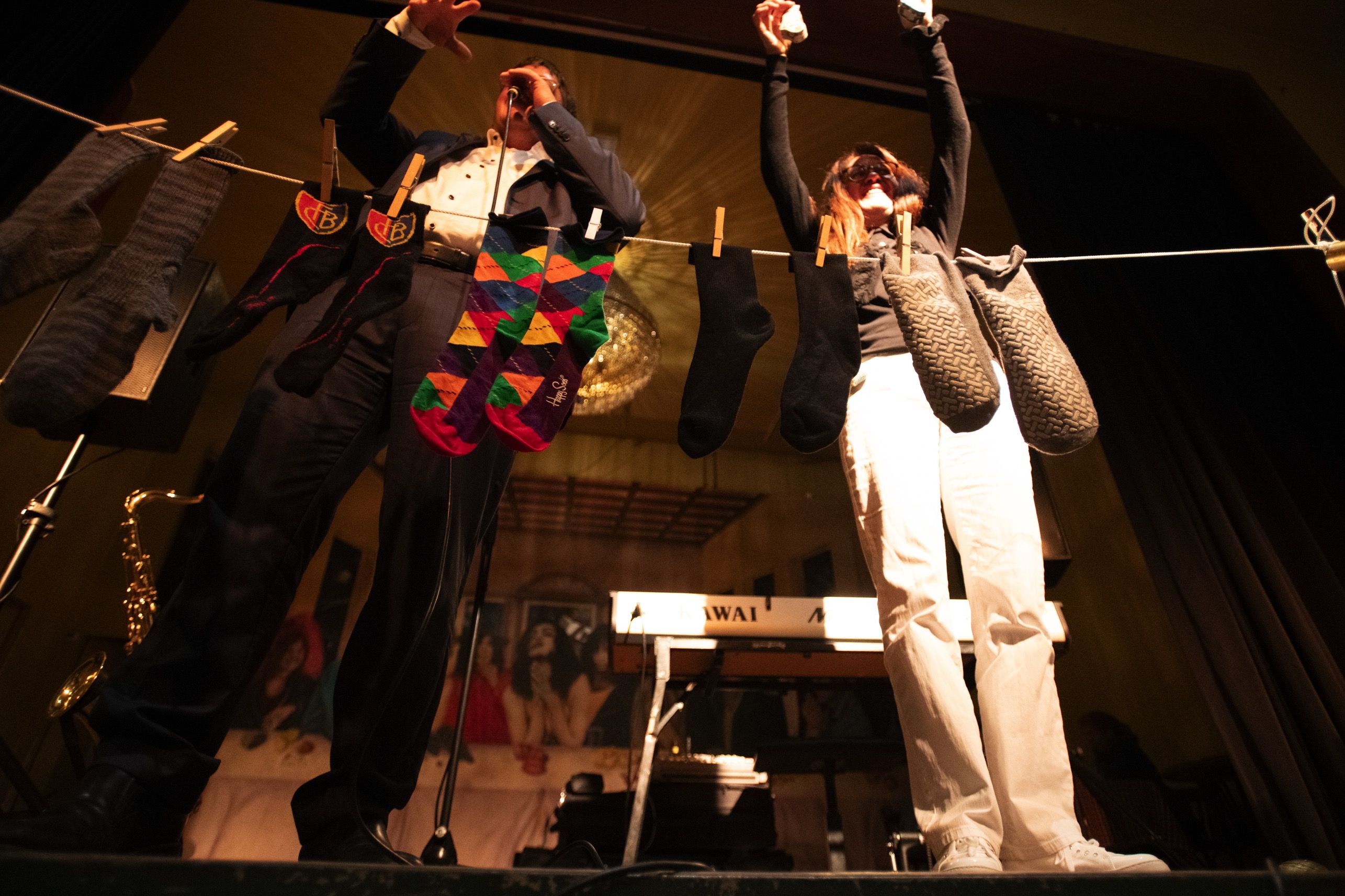 „Soggeball" nennt sich der illustre Anlass, der alljährlich in der zweiten Woche der Basler Herbstmesse stattfindet. Soggeball" deshalb, weil am Ende des Abends wollene handgestrickte Socken verteilt werden. Dazu gibt es für alle ein Päckli selbstgebackene Gutzi.